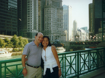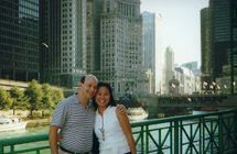Mike and Patti standing in front of the Chicago river Date: 02-07-13